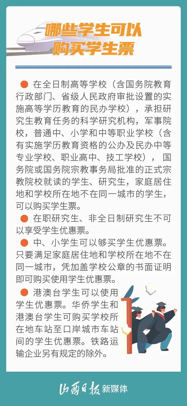時間來到8月底,無論是準備返校的小伙伴,還是剛拿到通知書的準大學生,汽車、火車、高鐵學生票都要安排起來了。今天,向大家介紹購買火車學生票的方法和相關(guān)問題!
