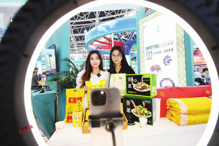 4.第六屆山西文化產(chǎn)業(yè)博覽交易會上,各路主播紛紛亮相,為當?shù)靥禺a(chǎn)代言、促銷。
