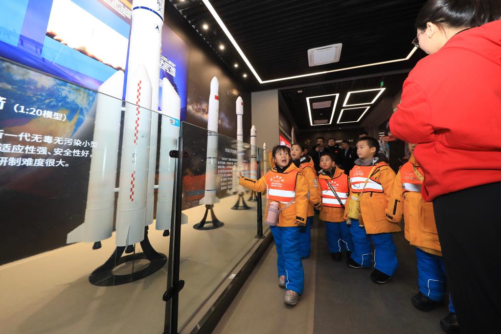 1月6日,“小砂糖橘”參觀哈爾濱工業(yè)大學(xué)航天館。新華社發(fā)