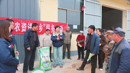 在黎城縣,農(nóng)資配送服務(wù)隊(duì)進(jìn)村開(kāi)展送農(nóng)資服務(wù)。本報(bào)通訊員攝