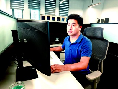 曹勇進行天氣預(yù)報技術(shù)研發(fā)。 受訪者供圖