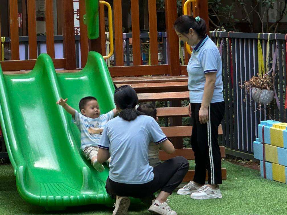 雞公嶺玉龍幼兒園內(nèi),小朋友們正在體驗?zāi)竺鎴F(tuán)。新華社記者李曉婷 攝 2022年,雞公嶺玉龍幼兒園開始“托幼一體化”辦園,一舉解決周邊3歲以下嬰幼兒“入園難”問題。 “從家過來只需10分鐘車程,非常方便?!奔易∪f州區(qū)鐘鼓樓街道的萬媽媽說,“這里有良好的辦園環(huán)境、專業(yè)的活動設(shè)置、耐心的保育員,我們在女兒2歲時就把她送到了托班?!?/p> 雞公嶺玉龍幼兒園并非個例,目前萬州區(qū)已有132家幼兒園實現(xiàn)“托幼一體化”辦園,通過利用現(xiàn)有場地,積極改造、擴建設(shè)施,延伸托育服務(wù)。 萬州區(qū)衛(wèi)健委相關(guān)負(fù)責(zé)人表示,近年來,萬州區(qū)著力打造“15分鐘托育圈”,探索“托幼一體化”“機關(guān)辦”“企事業(yè)辦”“社會辦”“社區(qū)辦”“家庭托育點”6種托育模式,推動托育機構(gòu)服務(wù)普惠化、優(yōu)質(zhì)化。去年,萬州區(qū)入選第一批全國嬰幼兒照護(hù)服務(wù)示范城市。 數(shù)據(jù)顯示,萬州區(qū)當(dāng)前運營托位共6081個,每千人口擁有3歲以下嬰幼兒托位數(shù)達(dá)3.9個,計劃到2025年每千人口擁有3歲以下嬰幼兒托位數(shù)達(dá)到4.5個。