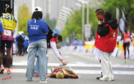 賽道內(nèi)外,另一群身影同樣令人動(dòng)容。志愿者們沿途遞水補(bǔ)給、指引方向,沙啞的嗓音里滿是熱忱;醫(yī)護(hù)人員隨身攜帶急救設(shè)備,目光緊盯著每一位跑者,隨時(shí)準(zhǔn)備伸出援手。他們的全程守護(hù),如同秋日里的暖陽,成為賽道上最溫暖的風(fēng)景。