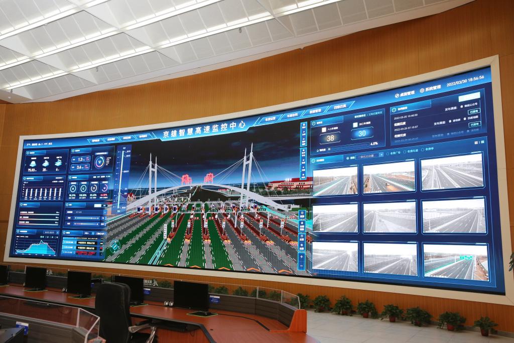 ??京雄智慧高速監(jiān)控中心(2022年3月30日攝)。新華社發(fā)(孫佳攝)