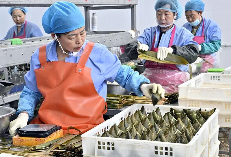 二是工藝出“粽”。“三片葦葉,三顆棗,一百克糯米不能少?!鼻嗵留兆硬粌H全手工傳統(tǒng)工藝包制,更輔以現(xiàn)代高溫滅菌和真空包裝技術,傳統(tǒng)與現(xiàn)代相結合,讓青塘粽子美味更健康。