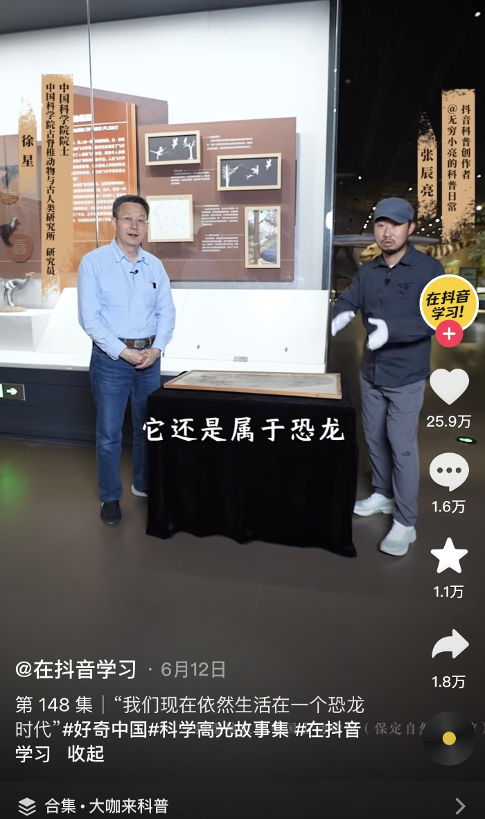 前不久,中國科學院院士徐星和《博物》雜志副主編、《中國國家地理》融媒體中心主任“無窮小亮”,帶著600多萬網(wǎng)友“云逛”中國古動物館(保定自然博物館),那寓教于“逛”的科普形式、極具網(wǎng)感的科普語言,就讓那些古生物知識從課本里鉆了出來,變得易懂可感。