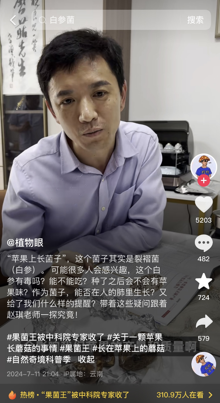 就這樣,知識以一種好玩的方式進入了許多網(wǎng)友的大腦。一株奇異的蘑菇,一項有意思的發(fā)現(xiàn),一系列菌類知識的科普,被一顆小小的蘋果串了起來,最終變成了一次帶動知識普及的契機。