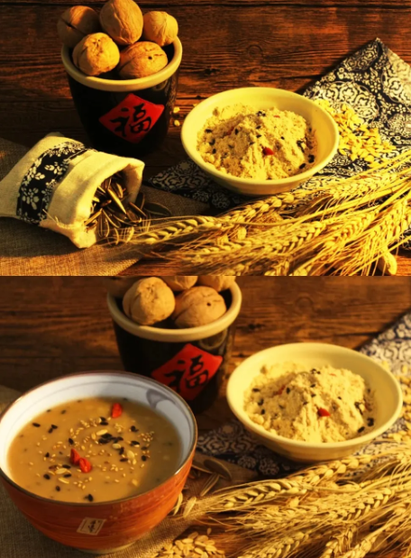 這款小吃由五谷雜糧粉和堅果炒制而成,加入開水即可飲用,無論是搭配油條還是咸菜,都別有一番風味。