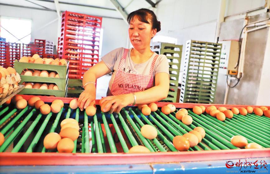 原平農(nóng)商行積極開展“三大四掃五進(jìn)”活動(dòng),讓普惠金融的觸角向鄉(xiāng)村不斷延伸,精準(zhǔn)對(duì)接縣域種養(yǎng)大戶,支持種養(yǎng)業(yè)發(fā)展。今年,該行為原平市興崞養(yǎng)殖專業(yè)合作社提供400萬(wàn)元信貸資金,解決了企業(yè)流動(dòng)資金不足的問(wèn)題。圖為專業(yè)合作社的工人在車間分撿雞蛋。趙 鴻 攝