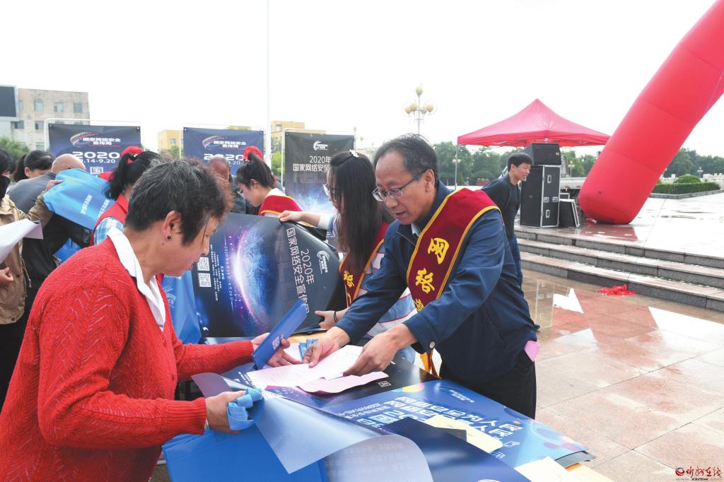 在2020年國家網(wǎng)絡(luò)安全宣傳周活動中,定襄縣采取多部門聯(lián)合的方式,通過懸掛宣傳橫幅、擺放宣傳展板、發(fā)放網(wǎng)絡(luò)安全知識手冊等形式,深入宣傳數(shù)據(jù)安全管理、個人信息保護等方面的法規(guī)、標準,并重點圍繞個人信息保護、網(wǎng)上交易辦理、惡意軟件清理、金融詐騙防范等市民關(guān)心關(guān)注的內(nèi)容開展宣講、提供咨詢服務,切實提高廣大人民群眾網(wǎng)絡(luò)安全意識和防護技能,引導廣大群眾依法用網(wǎng)、文明用網(wǎng),營造健康文明的網(wǎng)絡(luò)環(huán)境。圖為9月15日縣城宣傳現(xiàn)場。 張玉虎 攝