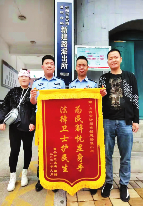 近日,一對西安夫婦將一面錦旗送到了忻州市公安局直屬分局新建路派出所,紅絨絨的錦旗上繡著14個金黃大字:“為民解憂顯身手,法律衛(wèi)士護民生?!?/p>