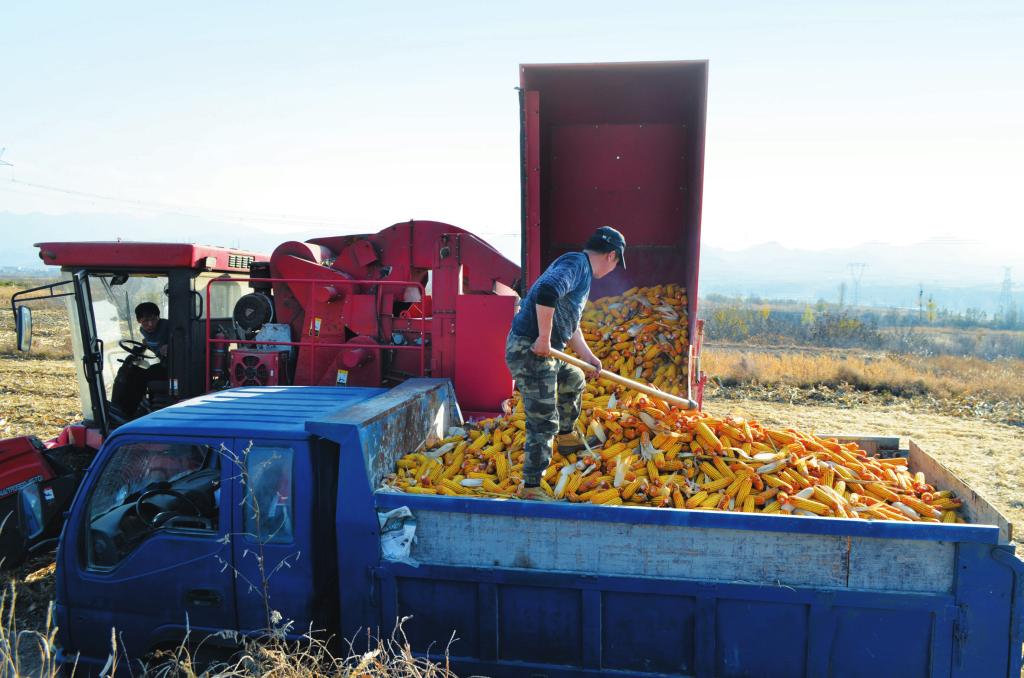五臺縣東冶鎮(zhèn)北一村積極推進土地確權(quán)流轉(zhuǎn),使外出村民棄耕和管理不善的土地向種田能手集中。村民王春明流轉(zhuǎn)土地800畝,并購置了大型農(nóng)機具,進行科學(xué)種植,實現(xiàn)了增收致富。圖為王春明利用收割機搶收玉米,保證顆粒歸倉。 (王金龍 攝)