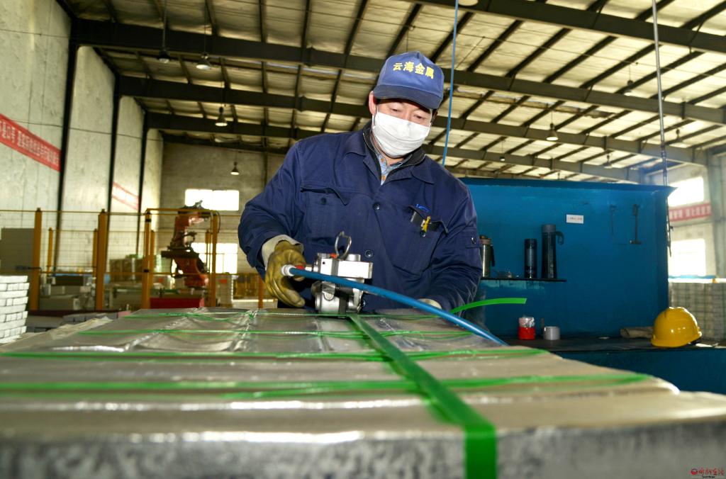 五臺(tái)云海鎂業(yè)工人正在打包產(chǎn)品。 張存良 攝