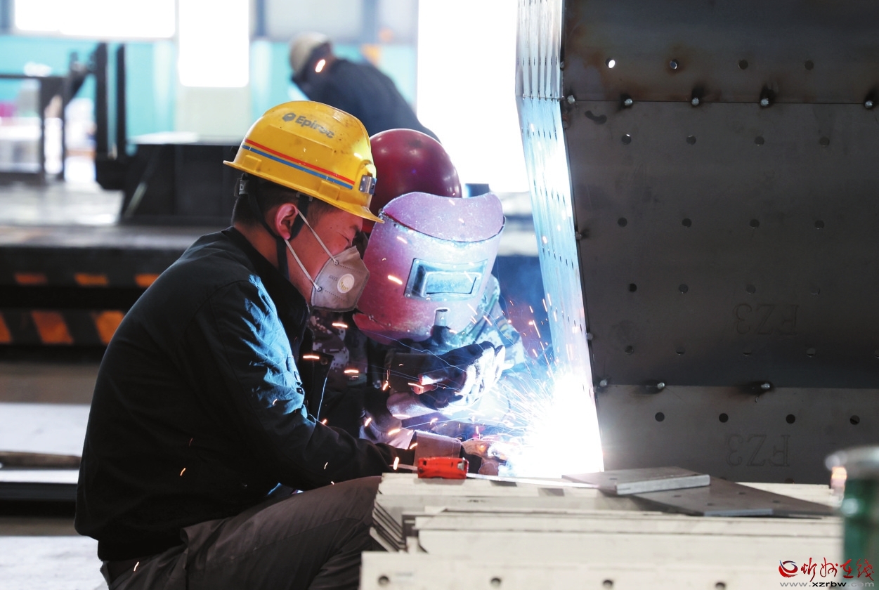 在久力科技的機械加工車間,工作人員正在對零部件進(jìn)行焊接作業(yè)。記者范琛攝