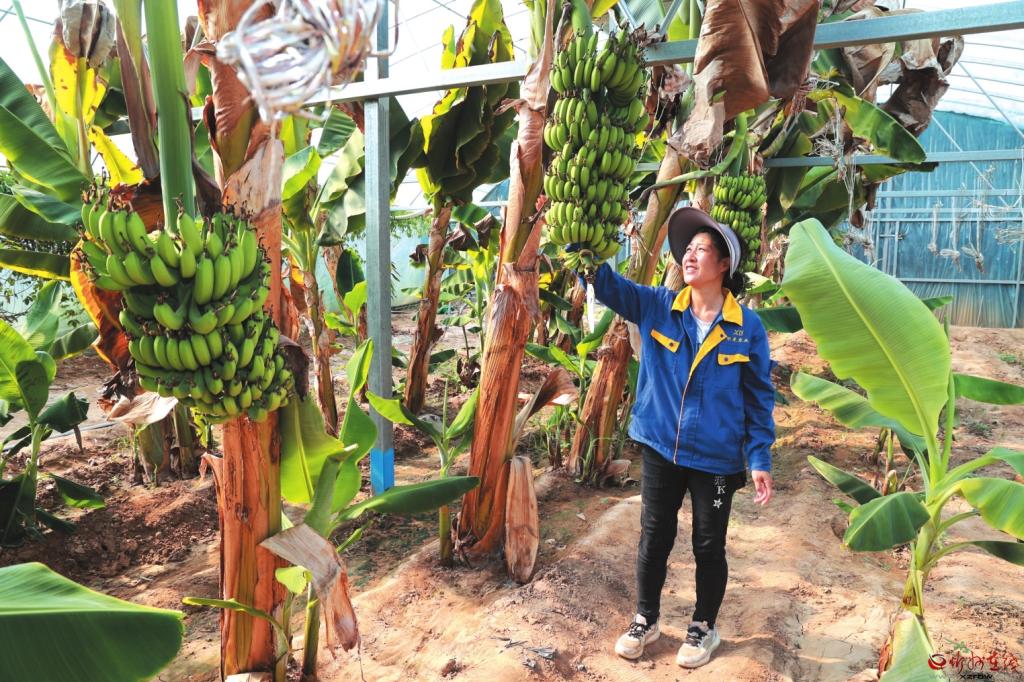 去年,侯學(xué)光在大棚開始試種“中蕉九號(hào)”?!靶酶畢^(qū)的水土環(huán)境竟與蕉苗生長條件高度契合,根系健壯少病害,首年就順利掛果。香蕉未熟時(shí)脆甜清香,成熟后軟糯可口,品質(zhì)不輸南方蕉。”他興奮地向記者介紹說。通過邀請專家改良土壤、施用自產(chǎn)有機(jī)肥、科學(xué)規(guī)劃間距,曾經(jīng)的邊角地已變身茂密蕉林。