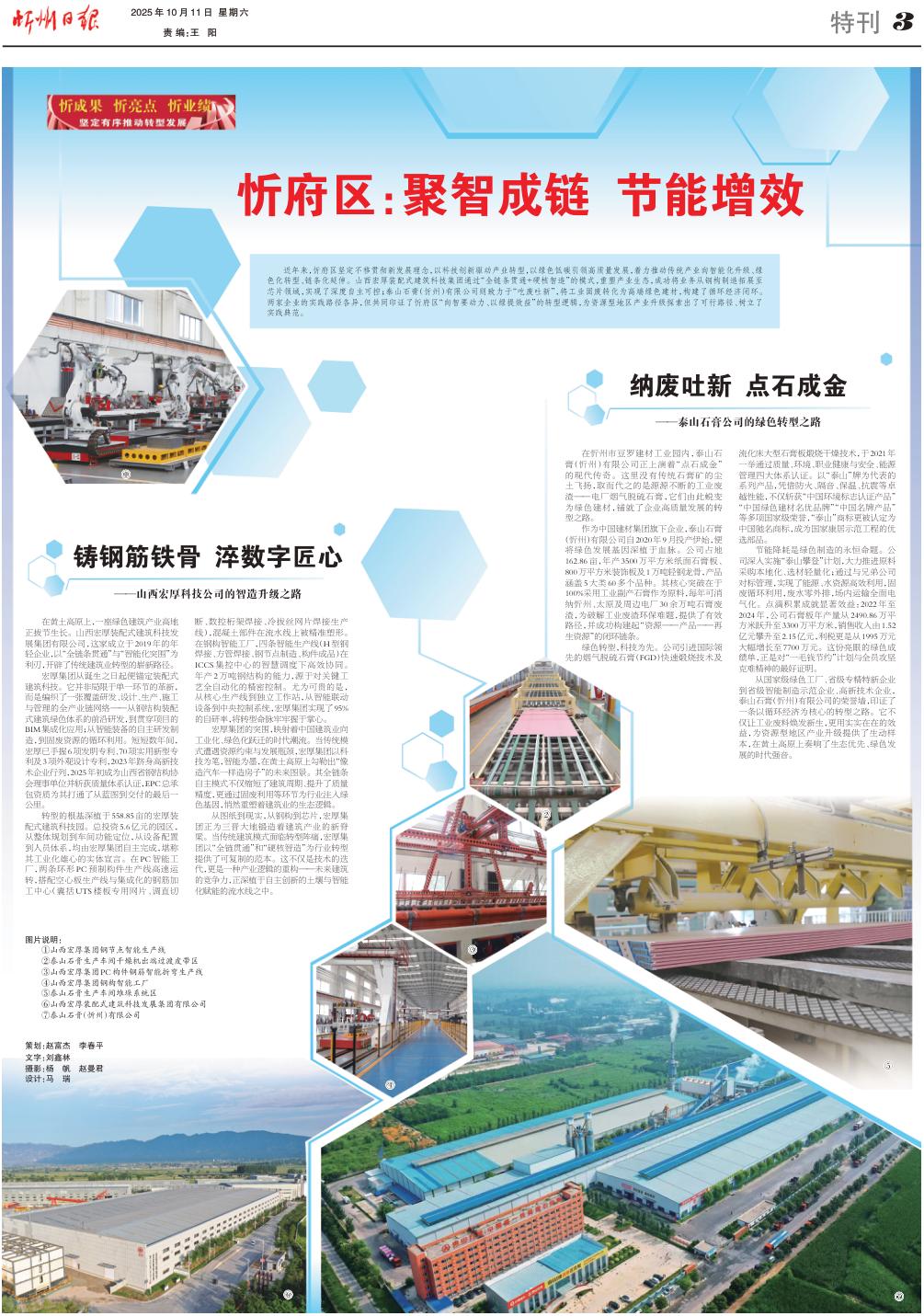 近年來,忻府區(qū)堅定不移貫徹新發(fā)展理念,以科技創(chuàng)新驅(qū)動產(chǎn)業(yè)轉(zhuǎn)型,以綠色低碳引領(lǐng)高質(zhì)量發(fā)展,著力推動傳統(tǒng)產(chǎn)業(yè)向智能化升級、綠色化轉(zhuǎn)型、鏈條化延伸。山西宏厚裝配式建筑科技集團(tuán)通過“全鏈條貫通+硬核智造”的模式,重塑產(chǎn)業(yè)生態(tài),成功將業(yè)務(wù)從鋼構(gòu)制造拓展至芯片領(lǐng)域,實現(xiàn)了深度自主可控;泰山石膏(忻州)有限公司則致力于“吃廢吐新”,將工業(yè)固廢轉(zhuǎn)化為高端綠色建材,構(gòu)建了循環(huán)經(jīng)濟(jì)閉環(huán)。兩家企業(yè)的實踐路徑各異,但共同印證了忻府區(qū)“向智要動力、以綠提效益”的轉(zhuǎn)型邏輯,為資源型地區(qū)產(chǎn)業(yè)升級探索出了可行路徑、樹立了實踐典范。
