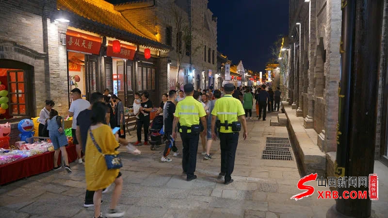 夜幕下的古城,華燈初上,忻府公安的警燈分外閃亮,巡邏民警穿梭在人群中,守護(hù)在群眾身邊,用最短時間、最快速度處理群眾緊急求助、處置各類突發(fā)警情,確保警力24小時不缺位,全力以赴守護(hù)景區(qū)和游客安全。(劉潔)