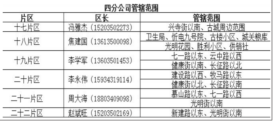| 忻州熱力有限公司公布22個(gè)供熱片區(qū)及負(fù)責(zé)人電話 |