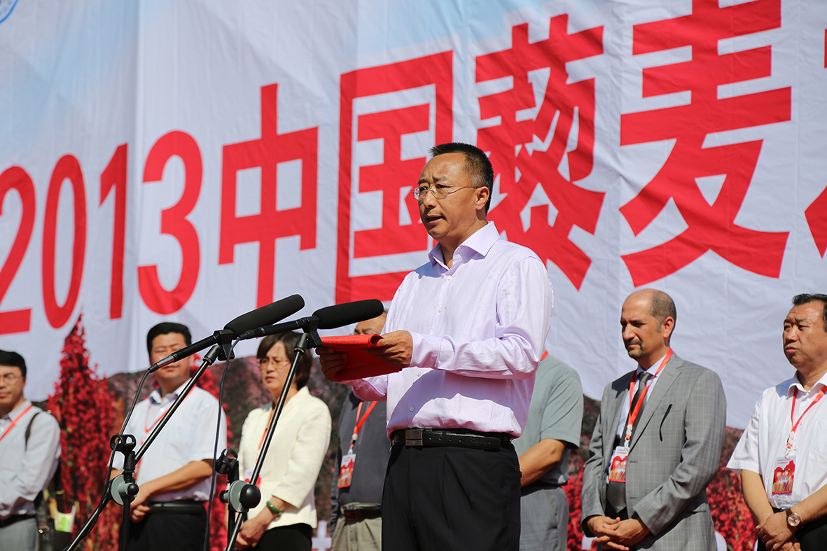 武祥云在靜樂(lè)藜麥豐收節(jié)致辭。受訪者供圖
