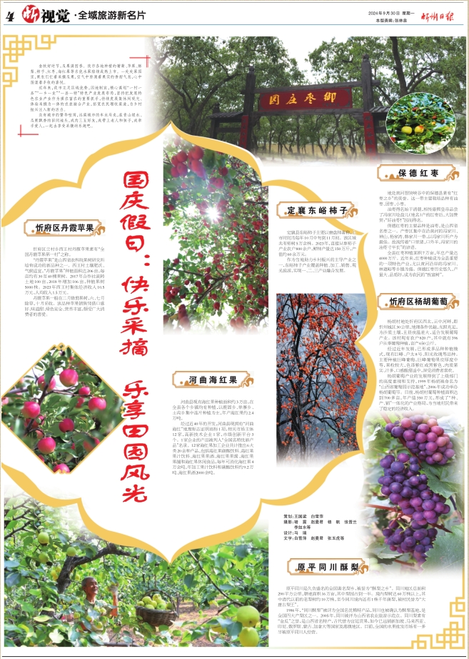 金秋好時(shí)節(jié),瓜果滿園香。我市各地種植的葡萄、蘋(píng)果、酥梨、柿子、紅棗、海紅果等名優(yōu)水果陸續(xù)成熟上市。一處處果園里,果農(nóng)們忙著采摘瓜果,空氣中彌漫著果實(shí)的香甜氣息,心中蕩漾著豐收的喜悅。