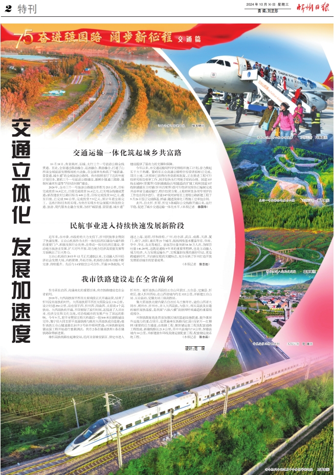 2024年,全市三個一號旅游公路建設里程為253公里,目標完成投資16.8億元,目前完成投資16.4億元,已實現(xiàn)全線建成貫通;新改建農(nóng)村公路目標為445公里,目標完成投資10億元,截至目前,已完成390公里,完成投資7.9億元,預計年底全部完工。這些目標任務的實現(xiàn),為我市實現(xiàn)鄉(xiāng)村全面振興和加快交通、旅游、現(xiàn)代服務業(yè)融合發(fā)展,加快“城景通、景景通、城鄉(xiāng)通”建設提供了強有力的支撐和保障。