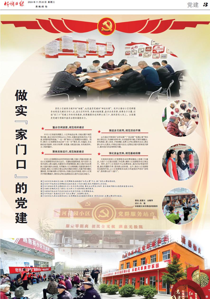 居民小區(qū)被稱為城市的“細(xì)胞”,也是基層黨建的“神經(jīng)末梢”。我市以推動小區(qū)黨群服務(wù)站規(guī)范化建設(shè)為切入點(diǎn),優(yōu)化空間布局、完善功能配置,盤活各類資源、統(tǒng)籌各方力量,打造“家門口”黨建工作的有效載體,把便捷服務(wù)送到群眾家門口、做到居民心坎上。全面激發(fā)黨建引領(lǐng)城市基層治理的蓬勃活力。