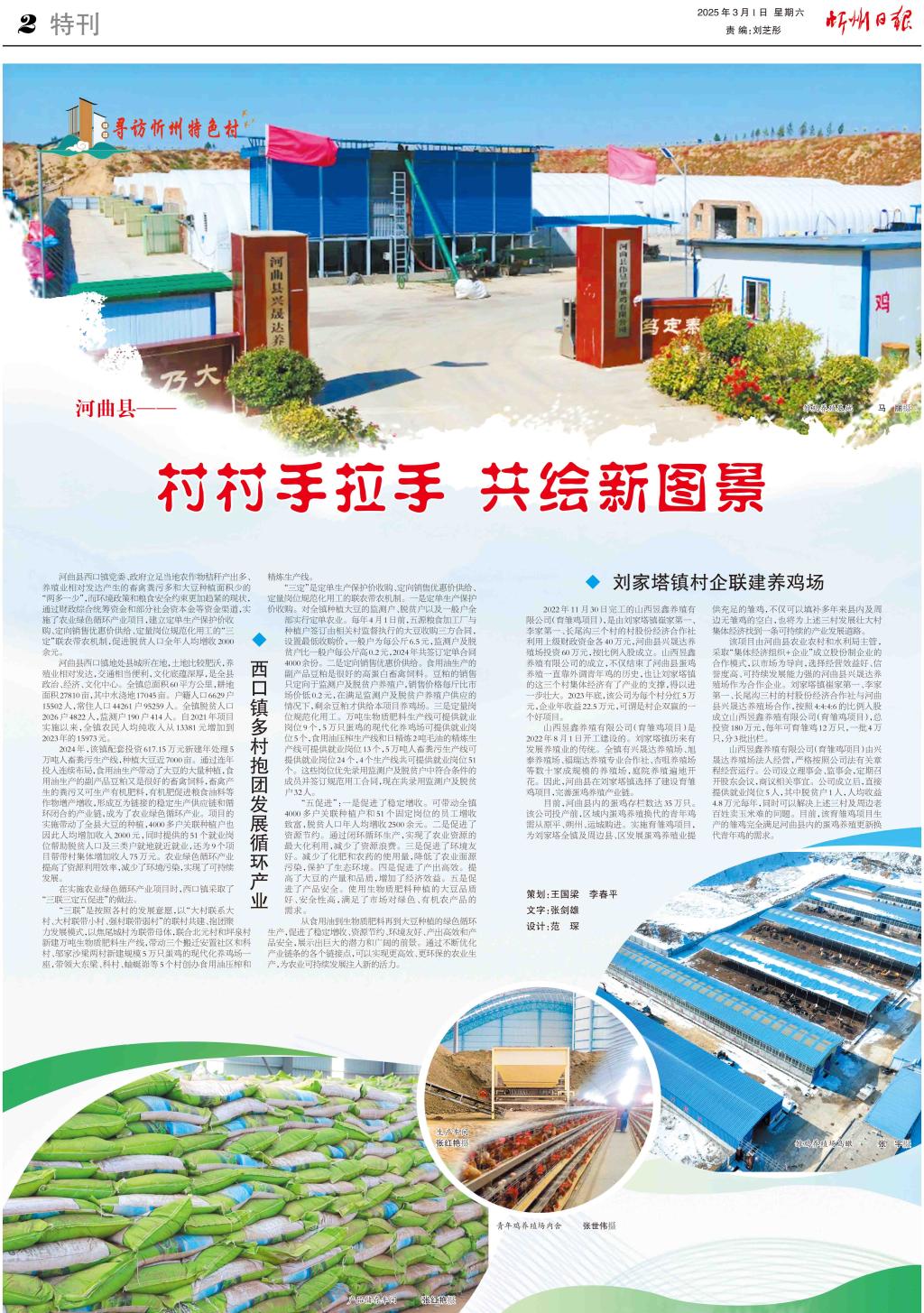 ◆西口鎮(zhèn)多村抱團(tuán)發(fā)展循環(huán)產(chǎn)業(yè) 河曲縣西口鎮(zhèn)黨委、政府立足當(dāng)?shù)剞r(nóng)作物秸稈產(chǎn)出多、養(yǎng)殖業(yè)相對(duì)發(fā)達(dá)產(chǎn)生的畜禽糞污多和大豆種植面積少的“兩多一少”,而環(huán)境政策和糧食安全約束更加趨緊的現(xiàn)狀,通過財(cái)政綜合統(tǒng)籌資金和部分社會(huì)資本金等資金渠道,實(shí)施了農(nóng)業(yè)綠色循環(huán)產(chǎn)業(yè)項(xiàng)目,建立定單生產(chǎn)保護(hù)價(jià)收購、定向銷售優(yōu)惠價(jià)供給、定量崗位規(guī)范化用工的“三定”聯(lián)農(nóng)帶農(nóng)機(jī)制,促進(jìn)脫貧人口全年人均增收2000余元。 河曲縣西口鎮(zhèn)地處縣城所在地,土地比較肥沃,養(yǎng)殖業(yè)相對(duì)發(fā)達(dá),交通相當(dāng)便利,文化底蘊(yùn)深厚,是全縣政治、經(jīng)濟(jì)、文化中心。全鎮(zhèn)總面積60平方公里,耕地面積27810畝,其中水澆地17045畝。戶籍人口6629戶15502人,常住人口44261戶95259人。全鎮(zhèn)脫貧人口2026戶4822人,監(jiān)測(cè)戶190戶414人。自2021年項(xiàng)目實(shí)施以來,全鎮(zhèn)農(nóng)民人均純收入從13381元增加到2023年的15973元。 2024年,該鎮(zhèn)配套投資617.15萬元新建年處理5萬噸人畜糞污生產(chǎn)線,種植大豆近7000畝。通過連年投入連續(xù)布局,食用油生產(chǎn)帶動(dòng)了大豆的大量種植,食用油生產(chǎn)的副產(chǎn)品豆粕又是很好的畜禽飼料,畜禽產(chǎn)生的糞污又可生產(chǎn)有機(jī)肥料,有機(jī)肥促進(jìn)糧食油料等作物增產(chǎn)增收,形成互為鏈接的穩(wěn)定生產(chǎn)供應(yīng)鏈和循環(huán)閉合的產(chǎn)業(yè)鏈,成為了農(nóng)業(yè)綠色循環(huán)產(chǎn)業(yè)。項(xiàng)目的實(shí)施帶動(dòng)了全縣大豆的種植,4000多戶關(guān)聯(lián)種植戶也因此人均增加收入2000元,同時(shí)提供的51個(gè)就業(yè)崗位幫助脫貧人口及三類戶就地就近就業(yè),還為9個(gè)項(xiàng)目幫帶村集體增加收入75萬元。農(nóng)業(yè)綠色循環(huán)產(chǎn)業(yè)提高了資源利用效率,減少了環(huán)境污染,實(shí)現(xiàn)了可持續(xù)發(fā)展。 在實(shí)施農(nóng)業(yè)綠色循環(huán)產(chǎn)業(yè)項(xiàng)目時(shí),西口鎮(zhèn)采取了“三聯(lián)三定五促進(jìn)”的做法。 “三聯(lián)”是按照各村的發(fā)展意愿,以“大村聯(lián)系大村、大村聯(lián)帶小村、強(qiáng)村聯(lián)帶弱村”的聯(lián)村共建、抱團(tuán)聚力發(fā)展模式,以焦尾城村為聯(lián)帶母體,聯(lián)合北元村和坪泉村新建萬噸生物質(zhì)肥料生產(chǎn)線,帶動(dòng)三個(gè)搬遷安置社區(qū)和科村、鄔家沙梁兩村新建規(guī)模5萬只蛋雞的現(xiàn)代化養(yǎng)雞場(chǎng)一座,帶領(lǐng)大東梁、科村、蚰蜒峁等5個(gè)村創(chuàng)辦食用油壓榨和精煉生產(chǎn)線。 “三定”是定單生產(chǎn)保護(hù)價(jià)收購、定向銷售優(yōu)惠價(jià)供給、定量崗位規(guī)范化用工的聯(lián)農(nóng)帶農(nóng)機(jī)制。一是定單生產(chǎn)保護(hù)價(jià)收購。對(duì)全鎮(zhèn)種植大豆的監(jiān)測(cè)戶、脫貧戶以及一般戶全部實(shí)行定單農(nóng)業(yè)。每年4月1日前,五源糧食加工廠與種植戶簽訂由相關(guān)村監(jiān)督執(zhí)行的大豆收購三方合同,設(shè)置最低收購價(jià),一般戶為每公斤6.5元,監(jiān)測(cè)戶及脫貧戶比一般戶每公斤高0.2元,2024年共簽訂定單合同4000余份。二是定向銷售優(yōu)惠價(jià)供給。食用油生產(chǎn)的副產(chǎn)品豆粕是很好的高蛋白畜禽飼料。豆粕的銷售只定向于監(jiān)測(cè)戶及脫貧戶養(yǎng)殖戶,銷售價(jià)格每斤比市場(chǎng)價(jià)低0.2元,在滿足監(jiān)測(cè)戶及脫貧戶養(yǎng)殖戶供應(yīng)的情況下,剩余豆粕才供給本項(xiàng)目養(yǎng)雞場(chǎng)。三是定量崗位規(guī)范化用工。萬噸生物質(zhì)肥料生產(chǎn)線可提供就業(yè)崗位9個(gè),5萬只蛋雞的現(xiàn)代化養(yǎng)雞場(chǎng)可提供就業(yè)崗位5個(gè),食用油壓榨生產(chǎn)線和日精煉2噸毛油的精煉生產(chǎn)線可提供就業(yè)崗位13個(gè),5萬噸人畜糞污生產(chǎn)線可提供就業(yè)崗位24個(gè),4個(gè)生產(chǎn)線共可提供就業(yè)崗位51個(gè)。這些崗位優(yōu)先錄用監(jiān)測(cè)戶及脫貧戶中符合條件的成員并簽訂規(guī)范用工合同,現(xiàn)在共錄用監(jiān)測(cè)戶及脫貧戶32人。 “五促進(jìn)”:一是促進(jìn)了穩(wěn)定增收??蓭?dòng)全鎮(zhèn)4000多戶關(guān)聯(lián)種植戶和51個(gè)固定崗位的員工增收致富,脫貧人口年人均增收2500余元。二是促進(jìn)了資源節(jié)約。通過閉環(huán)循環(huán)生產(chǎn),實(shí)現(xiàn)了農(nóng)業(yè)資源的最大化利用,減少了資源浪費(fèi)。三是促進(jìn)了環(huán)境友好。減少了化肥和農(nóng)藥的使用量,降低了農(nóng)業(yè)面源污染,保護(hù)了生態(tài)環(huán)境。四是促進(jìn)了產(chǎn)出高效。提高了大豆的產(chǎn)量和品質(zhì),增加了經(jīng)濟(jì)效益。五是促進(jìn)了產(chǎn)品安全。使用生物質(zhì)肥料種植的大豆品質(zhì)好、安全性高,滿足了市場(chǎng)對(duì)綠色、有機(jī)農(nóng)產(chǎn)品的需求。 從食用油到生物質(zhì)肥料再到大豆種植的綠色循環(huán)生產(chǎn),促進(jìn)了穩(wěn)定增收、資源節(jié)約