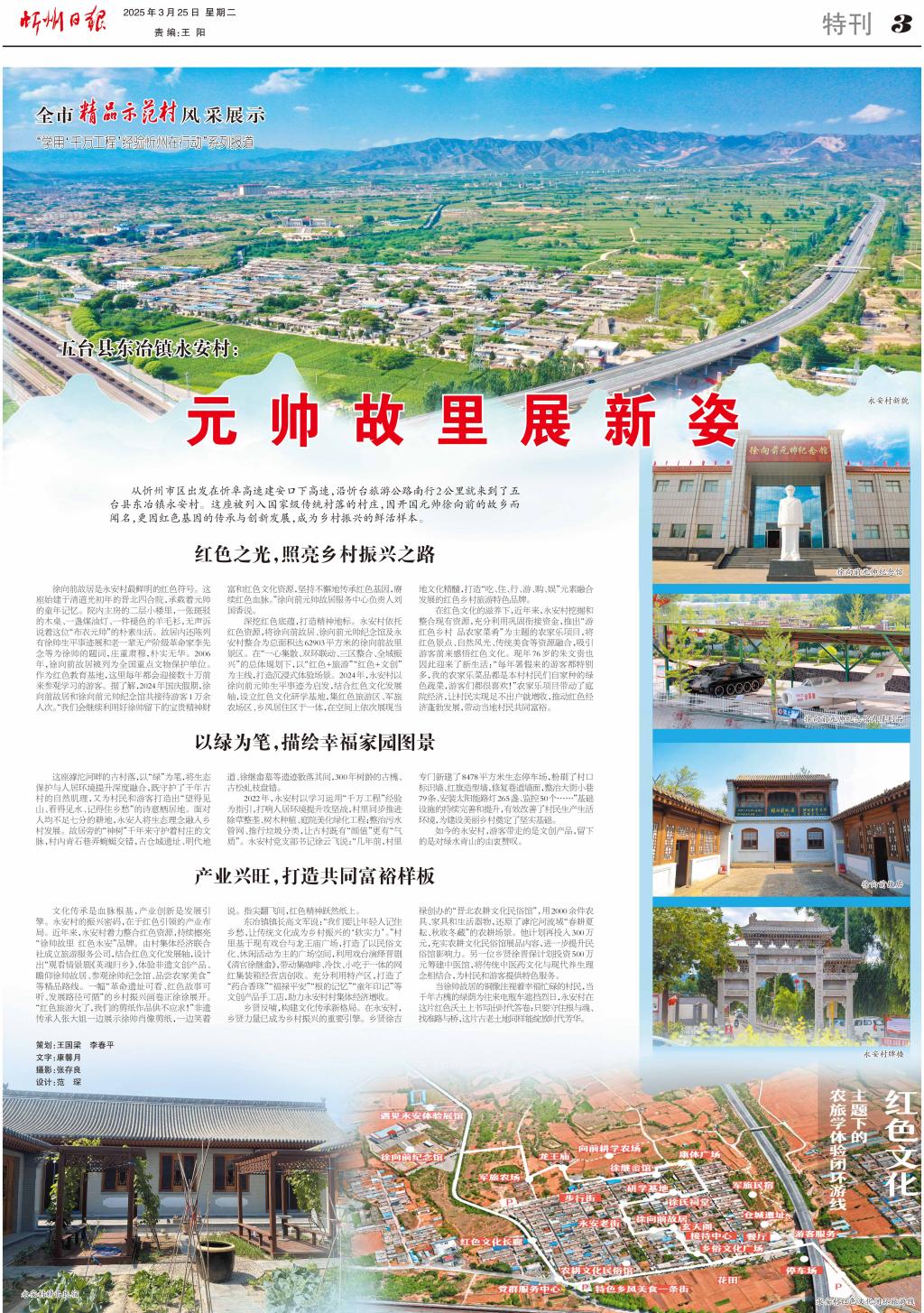 從忻州市區(qū)出發(fā)在忻阜高速建安口下高速,沿忻臺(tái)旅游公路南行2公里就來到了五臺(tái)縣東冶鎮(zhèn)永安村。這座被列入國(guó)家級(jí)傳統(tǒng)村落的村莊,因開國(guó)元帥徐向前的故鄉(xiāng)而聞名,更因紅色基因的傳承與創(chuàng)新發(fā)展,成為鄉(xiāng)村振興的鮮活樣本。