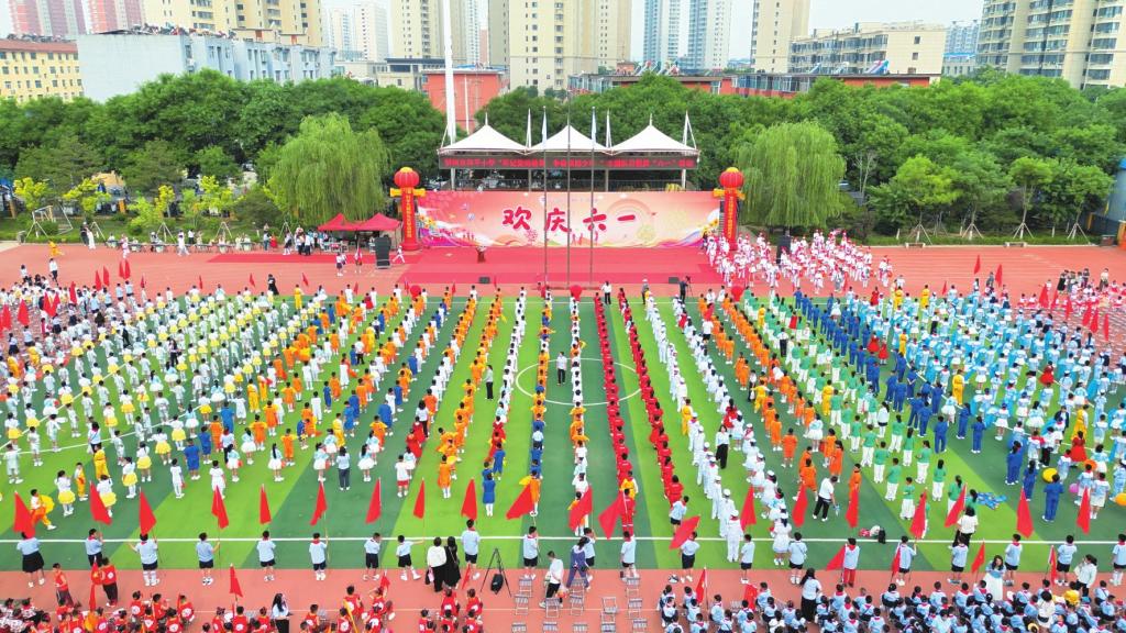 5月30日,忻州市和平小學(xué)全體師生歡聚一堂,載歌載舞,通過合唱、舞蹈、武術(shù)、團體操、模特表演等形式慶祝屬于自己的節(jié)日——“六一”國際兒童節(jié)。
