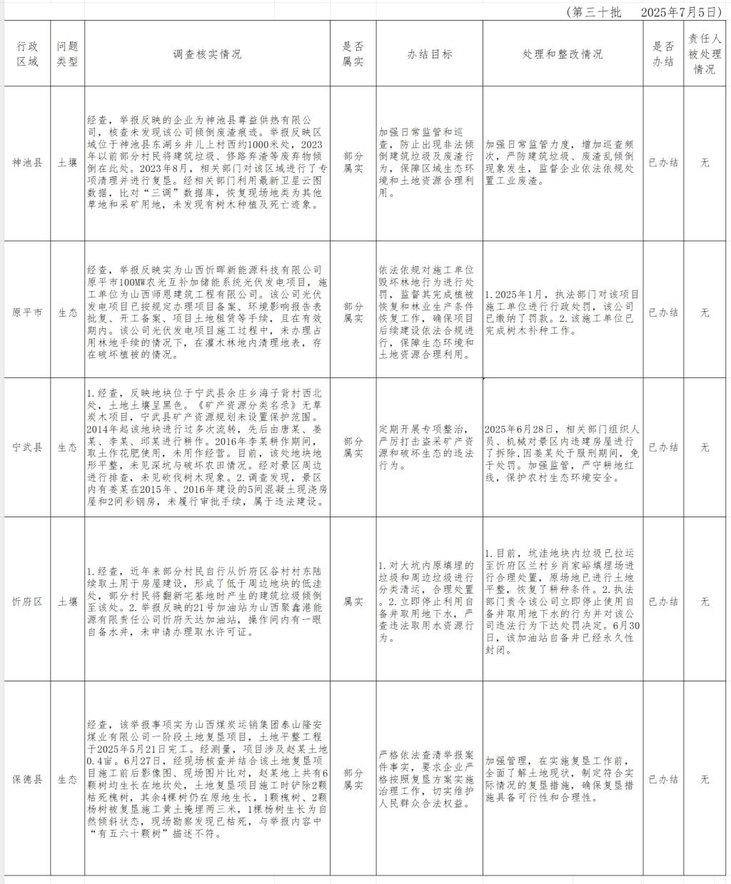 中央生態(tài)環(huán)境保護(hù)督察組群眾信訪舉報(bào)轉(zhuǎn)辦和邊督邊改公開情況一覽表(第三十批)