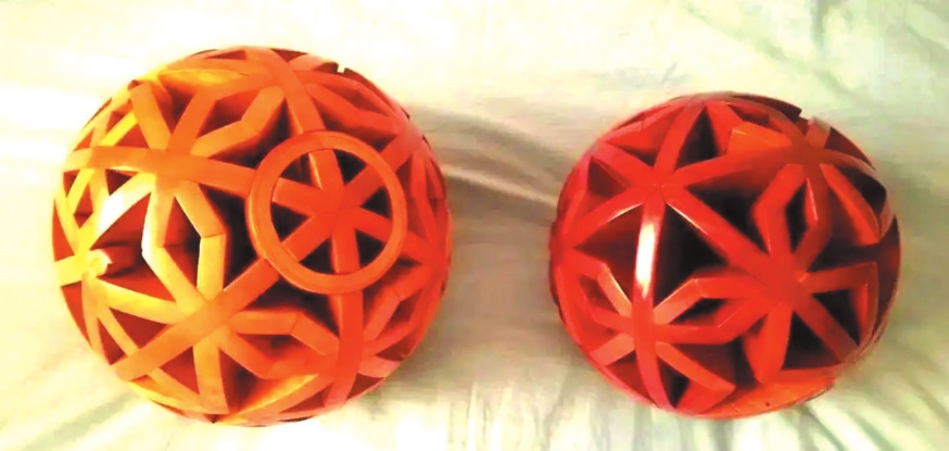 “沒用一顆釘子、一滴膠水,我們利用了榫卯技藝,讓108塊形狀各異的木構(gòu)件緊密連接,構(gòu)成一個鏤空的地球,祈盼世界團結(jié)、人類和平?!薄堕久挠钪妗肪巹?、忻州王爾文玩(魯班鎖、孔明鎖)(以下簡稱“王爾文玩”)傳統(tǒng)木作技藝非物質(zhì)文化遺產(chǎn)代表性傳承人趙永功說。