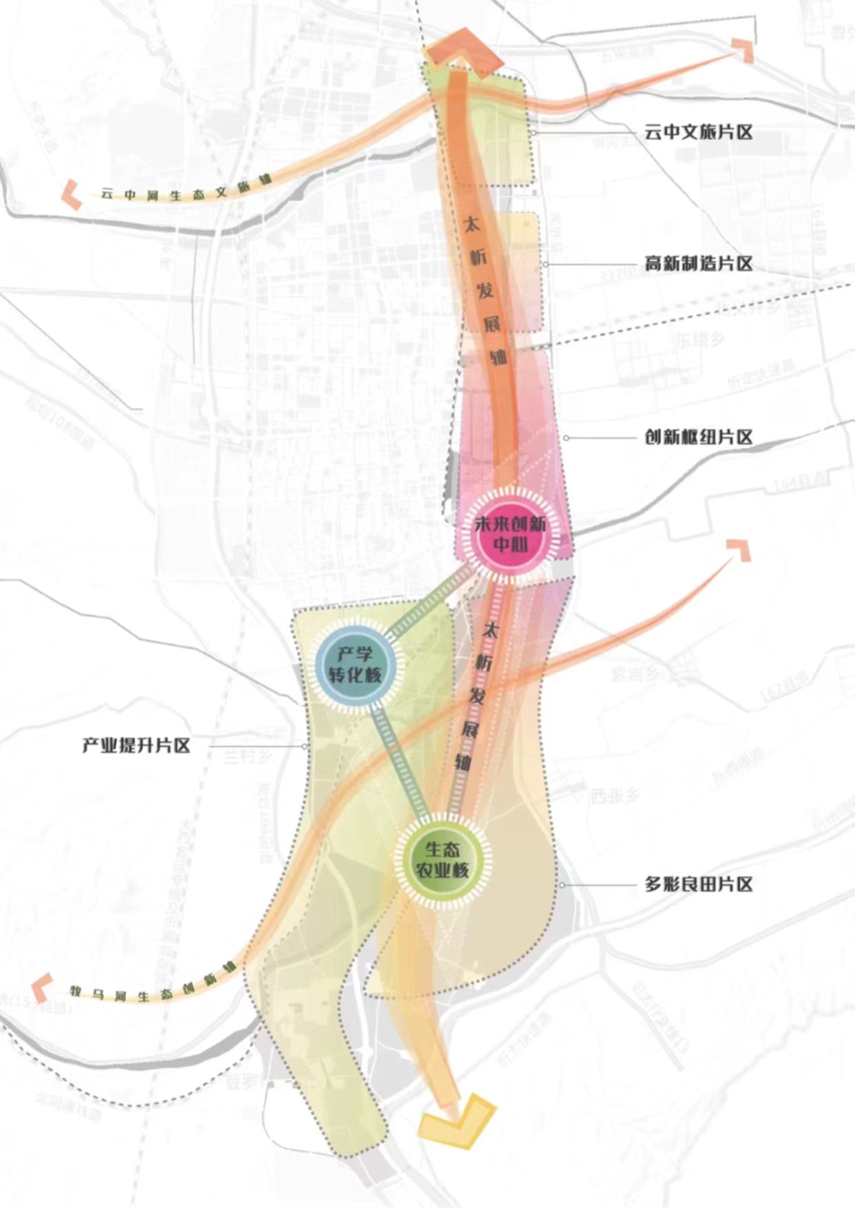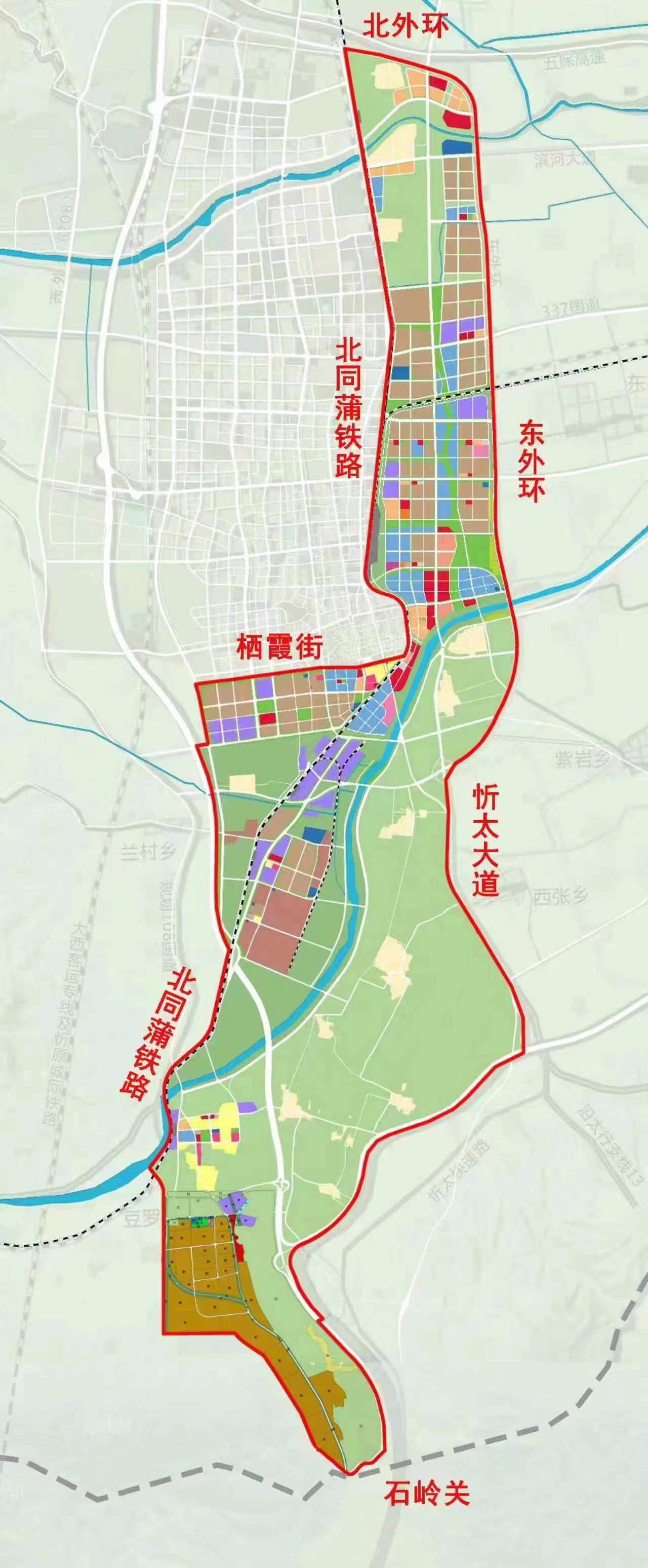 規(guī)劃面積約100平方公里,北至北外環(huán),南至石嶺關(guān)(太原界),西至北同蒲鐵路,東至東外環(huán)。新區(qū)作為太忻一體化經(jīng)濟(jì)區(qū)忻州片區(qū)的啟動區(qū),堅持生態(tài)優(yōu)先、綠色發(fā)展,統(tǒng)籌生活、生態(tài)、生產(chǎn)三大空間,以“一心雙核、三軸五片區(qū)”規(guī)劃布局,預(yù)留未來產(chǎn)業(yè)發(fā)展用地,重點(diǎn)發(fā)展雜糧產(chǎn)業(yè)、現(xiàn)代物流產(chǎn)業(yè)、新能源材料產(chǎn)業(yè)、文旅產(chǎn)業(yè)和科技創(chuàng)新智造產(chǎn)業(yè),北部打造高新制造集合體、云中河?xùn)|段打造休閑度假文旅區(qū)、中部打造創(chuàng)新樞紐核心區(qū)、西南部打造產(chǎn)業(yè)提升區(qū)、東南部打造多彩良田示范區(qū),形成與大盂產(chǎn)業(yè)新城南北呼應(yīng)之勢。