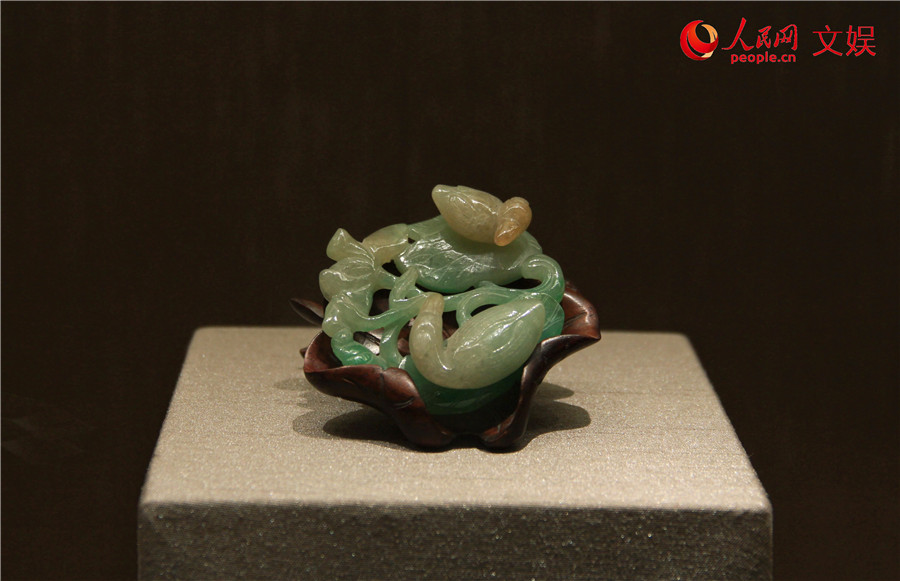 清代翡翠鴛鴦荷花件。人民網 孟麗媛攝