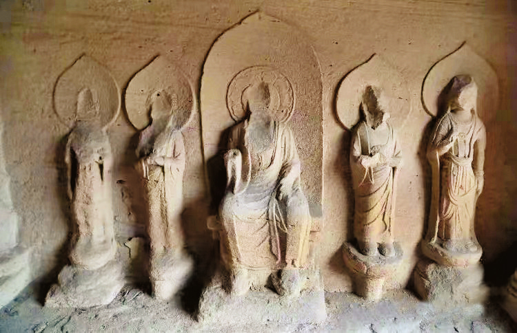 靜居寺石窟位于靜樂(lè)縣豐潤(rùn)鎮(zhèn)豐潤(rùn)村南500米寧白公路東側(cè)半山崖間,現(xiàn)存9窟,分布面積430平方米。據(jù)3至6窟間的摩崖碑記載,鑿于唐儀鳳二年(公元677年)。石窟均坐東朝西。1至6窟平面呈長(zhǎng)方形,平頂,四壁平直,高1.5米至1.8米,寬2米至2.5米,深1.5米至2.5米?;鹧纨愰T(mén),長(zhǎng)方形,高1.1米至1.5米,寬1米至1.4米。門(mén)兩側(cè)設(shè)方形石柱或八棱束蓮柱,門(mén)楣內(nèi)雕飛天或花卉??邇?nèi)均設(shè)低壇,三壁均設(shè)石造像。7至9窟呈長(zhǎng)方形,拱券頂。3至6窟外壁存摩崖碑3通,均螭首,碑文漫漶不清。窟頂上部存有窟檐椽孔??呶鱾?cè)存明萬(wàn)歷二十二年(公元1594年)及清嘉慶十五年(公元1810年)重修碑各1通。1986年5月公布為省級(jí)重點(diǎn)文物保護(hù)單位。2019年10月7日公布為全國(guó)重點(diǎn)文物保護(hù)單位。
