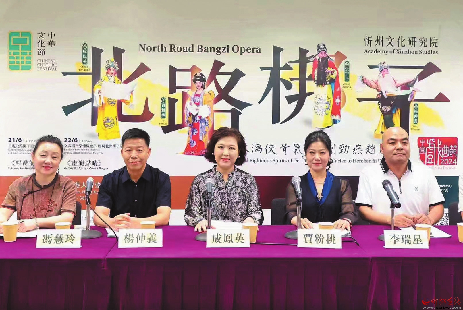 6月20日,忻州文化研究院組織精干力量,組成文化交流團(以下簡稱交流團)赴港演出。交流團由忻州市政府督查專員張建平擔(dān)任團長,忻州文化研究院黨組書記、院長劉燕萍擔(dān)任副團長,北路梆子三位“梅花獎”獲得者楊仲義、成鳳英、賈粉桃等一行69人組成。交流團于6月21日至23日在香港大會堂演出《醒醉記》《畫龍點睛》《雙官誥》三部北路梆子傳統(tǒng)劇目。