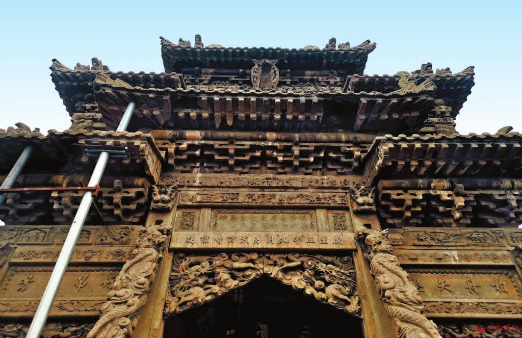 主坊位于原平市大牛店鎮(zhèn)陽武村,據記載,始建于清咸豐五年(公元1855年),坐東朝西,四柱三樓,重檐歇山頂,通高10.54米,通面寬15米,建于高0.94米的束腰須彌座上,束腰部雕有各種人物故事圖,正面雕有四個力士。額枋下四柱為方形霸王柱,前后有戧柱支撐。戧柱上有螭首纏繞。明樓略寬,兩次樓稍窄。明樓雀替上鏤雕有二龍戲珠圖,上置額枋及樓匾,分別署“咸豐五年九月男武訪疇謹建”“旌表資政大夫庠生武烈之妻朱氏節(jié)孝坊”。兩次樓雀替上鏤雕丹鳳朝陽,額枋上分別署“柏舟矢志”“竹帛流芳”,上下枋均雕有二十四孝圖、人物故事及花鳥走獸等圖案。下層檐仿木構石雕斗拱,五踩重翹,上層檐仿木構石雕斗拱,三踩單翹。坊前設有石雕、旗桿各一對。配坊坐北朝南,四柱三門,單檐歇山頂。牌樓石刻神獸、人物、楹聯。1982年維修。1965年公布為省級文物保護單位。2019年入選全國第八批國家級保護單位。