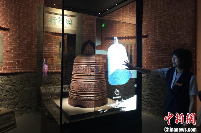 中國閩臺(tái)緣博物館里的眾多涉臺(tái)文物述說著兩岸間難以割舍的情感紐帶。圖為清道光十七年鹿港郊公置鐵鐘。 吳冠標(biāo) 攝