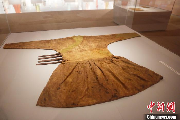 在“衣冠流傳”展廳內(nèi),一件經(jīng)過修復的“元代龍鳳紋織金錦辮線袍”同樣留存文化融合的痕跡。