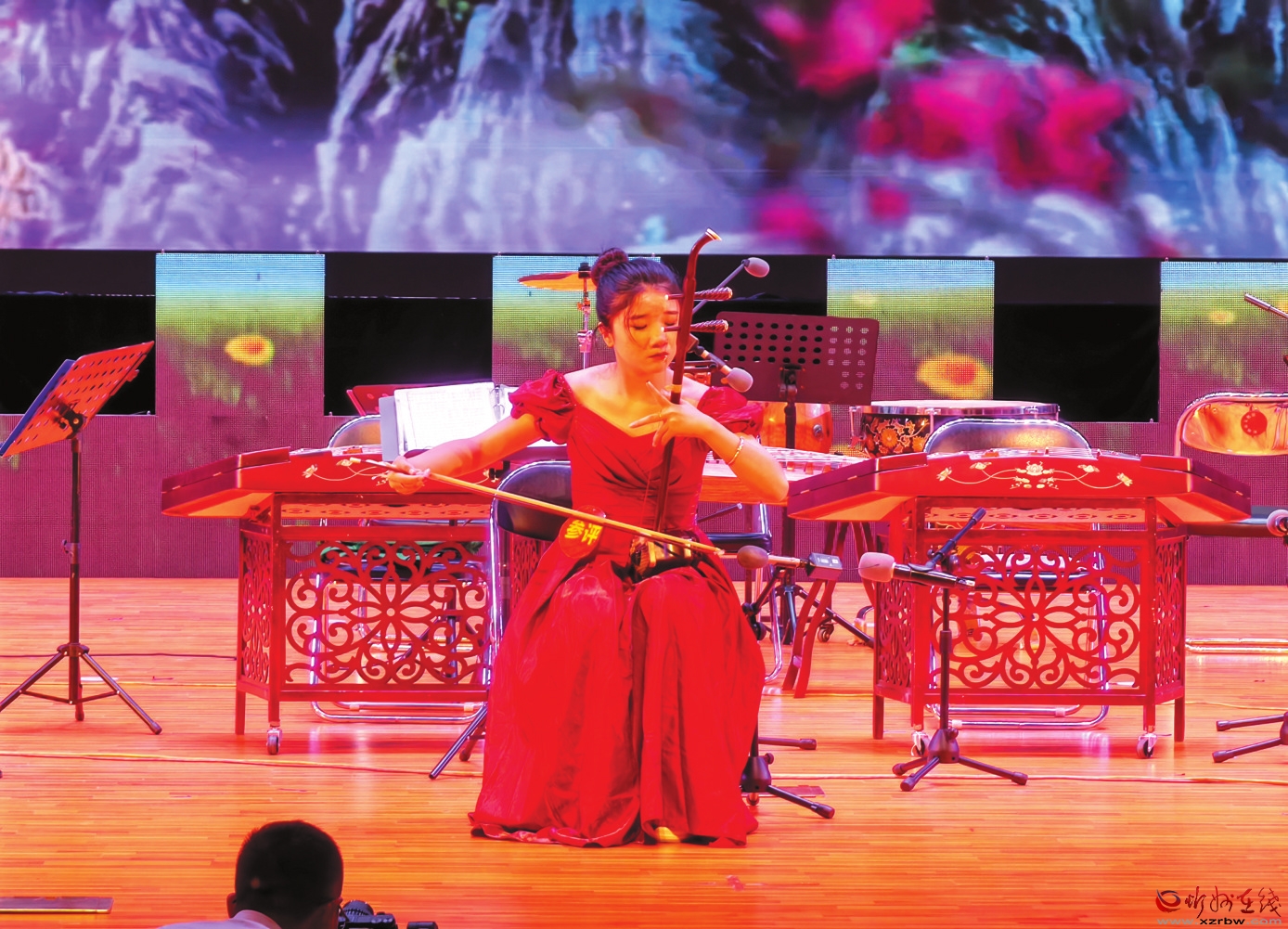 9月20日至24日,在喜迎中華人民共和國(guó)成立75周年的濃厚氛圍中,由忻州市委宣傳部、忻州市文化和旅游局主辦,定襄縣文化和旅游局協(xié)辦的忻州市第十四屆“梨花獎(jiǎng)”舞臺(tái)藝術(shù)大賽(民樂(lè)類)在中國(guó)鍛造之鄉(xiāng)——定襄盛裝啟幕。5天來(lái),來(lái)自全市11個(gè)縣(市、區(qū))委宣傳部、文旅局,1個(gè)市直文藝院團(tuán)選送的12臺(tái)節(jié)目、106個(gè)民間器樂(lè)曲、559名樂(lè)手閃亮登場(chǎng),演員同臺(tái)競(jìng)技,吹管、拉弦、彈撥、打擊百花齊放,獨(dú)奏、齊奏、重奏、合奏、聯(lián)奏五奏同框,為廣大觀眾獻(xiàn)上了一場(chǎng)場(chǎng)精彩紛呈的民間器樂(lè)視聽(tīng)盛宴,共同奏響“雅樂(lè)和鳴,禮贊祖國(guó)”的唯美華章,為共和國(guó)75華誕獻(xiàn)上了一份實(shí)實(shí)在在的厚禮。