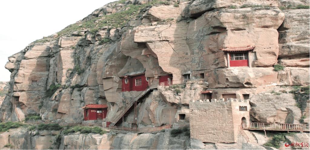 故城石窟位于保德縣楊家灣鎮(zhèn)故城村西1500米、黃河?xùn)|岸石崖上。清順治二年(1645),由陳奇瑜構(gòu)筑,歷時三年建成,建有呂仙祠等建筑。故城石窟坐東向西,占地面積約600平方米。向南石砌的古堡式門洞,門洞上方匾書“釣魚臺”,頂部砌有女兒墻垛口。山壁上有大小不等的10孔人工開鑿的石窟。