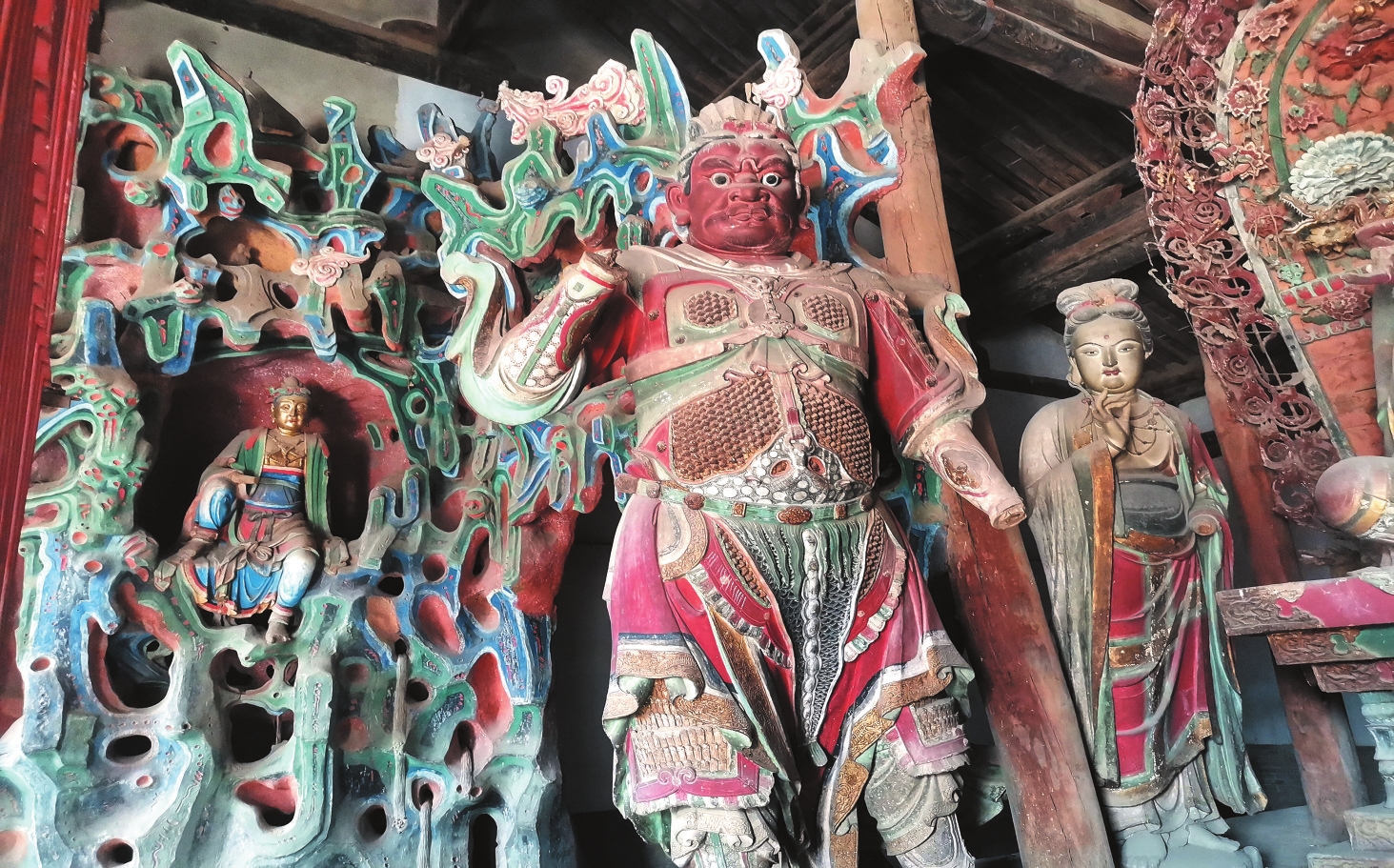 梁下莊嚴(yán)寶相、金剛怒目,梁上衣袂飄飄、雅樂乾坤。到過洪福寺的人都會為大殿內(nèi)這一靜一動的造像藝術(shù)所驚嘆。
