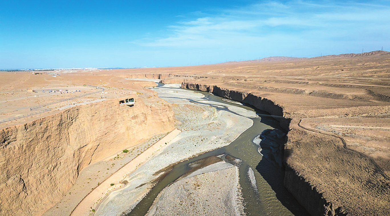 墩體與討賴河峽谷全貌,可見加固后的遺存結構