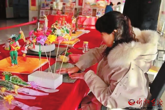 原平市北方現(xiàn)代雙語學校的老師展示面塑技藝