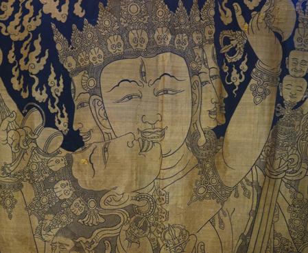 ▲明永樂(lè)織錦勝樂(lè)金剛唐卡(局部)。
