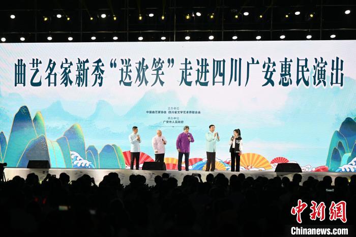 中新網(wǎng)成都5月10日電(王爵 王林)“我想死你們啦!”9日晚,由中國曲協(xié)、四川省文聯(lián)、廣安市人民政府聯(lián)合舉辦的中國曲協(xié)曲藝名家新秀“送歡笑”惠民演出活動在四川省廣安市舉行,馮鞏、苗阜、李偉建、邵峰、趙海燕等曲藝大咖同臺演出,為廣安市民奉獻(xiàn)了一場精彩紛呈的曲藝盛宴,笑料十足、“笑果”滿滿。