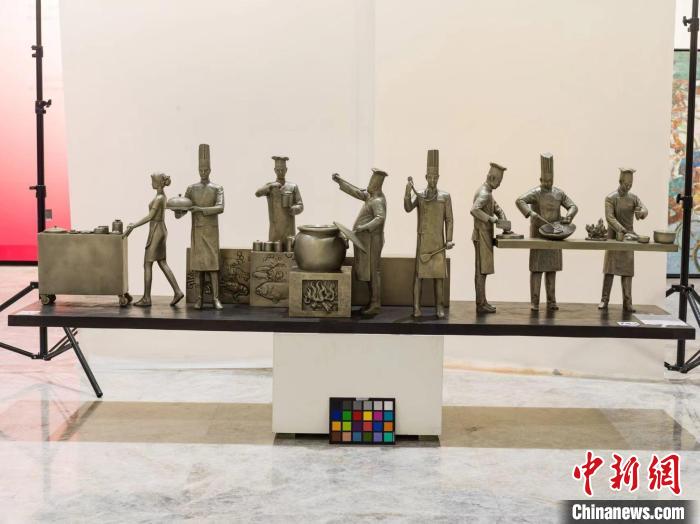 展覽現(xiàn)場展出的雕塑作品《粵菜師傅》。廣東省文聯(lián) 供圖