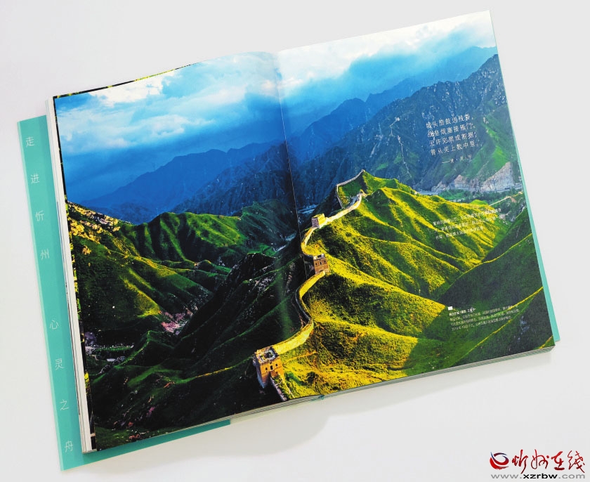 在視覺呈現(xiàn)上,為了追求最佳的閱讀體驗,書中每一篇文章都精雕細琢,每一張攝影作品選用也極其嚴苛。要求文字內(nèi)容與圖片內(nèi)容都要一一對應,可以說每一個對開頁面,都是一次全新的設計。就這樣,把忻州的美好風光同當?shù)氐娜宋臍v史有機地融合在一起,給人以賞心悅目的享受和豐富知識的熏陶,讓人既覺得身臨其境,又心馳神往。