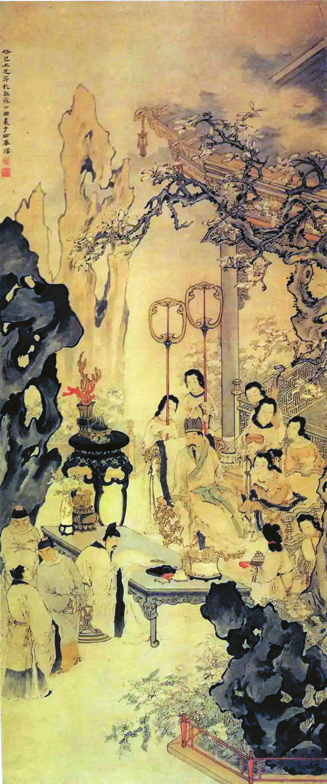 唐人李濬的《松窗雜錄》載,李白在長安任翰林待詔時,一日宮中牡丹綻放,唐玄宗與楊貴妃前往賞花,找來李龜年等人奏樂歌唱。但玄宗看了歌單,覺得都是些過氣的舊曲子,配不上眼前的名花美女,就讓李龜年趕快去找李白填新詞。當(dāng)時李白宿醉未醒,趁著酒力秉筆賦詞,當(dāng)場寫就三首《清平調(diào)》歌頌楊貴妃的美貌。待李龜年唱完,楊貴妃很高興,還親自領(lǐng)唱了這三首歌。唐玄宗也吹著玉笛伴奏,由此奠定了李白在盛唐詩壇“一哥”的重要地位。李白創(chuàng)作樂府詩的事情被收入《舊唐書》:“玄宗度曲,欲造樂府新詞,亟召白,白已臥于酒肆矣。召入,以水灑面,即令秉筆,頃之成十余章,帝頗嘉之?!边@段關(guān)于李白的佳話,在中國詩歌史上留下濃墨重彩的一筆。
