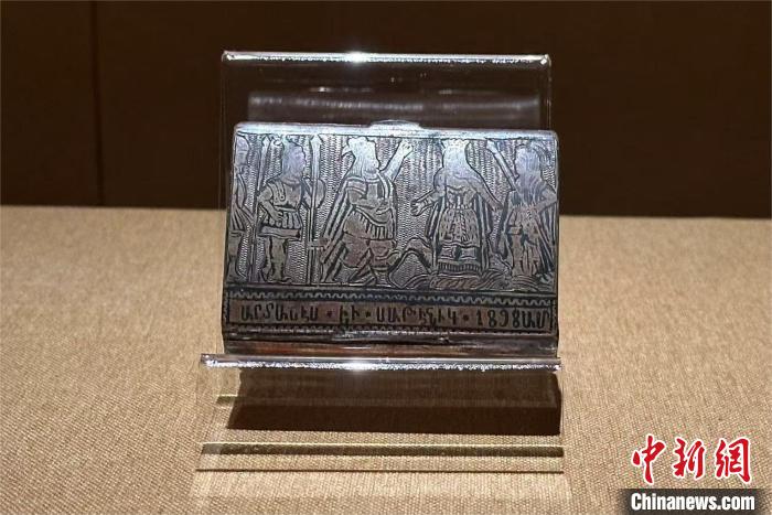 展覽展出的1898年印有銘文的銀質煙盒,小巧實用,上面刻有“1898”及亞美尼亞文字“阿爾塔什斯”“薩特尼克”。據(jù)悉,阿爾塔什斯王朝的建立者阿爾塔什斯一世和阿蘭王女兒薩特尼克公主的故事,可追溯至公元前2世紀,他們的婚姻被視為不同民族和文化統(tǒng)一的象征。
