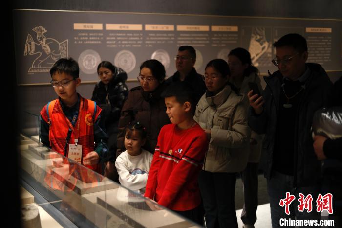 太原市博物館小小講解員為游客介紹文物。太原市文物局 提供 春節(jié)期間,太原市文物局直屬文物景區(qū)、文博場館結(jié)合春節(jié)傳統(tǒng)文化,各類活動聯(lián)動呼應(yīng),吸引各地游客前來“打卡”,形式多樣,年味十足,推出線下活動83項(xiàng)、展覽52項(xiàng),線上活動33項(xiàng)、展覽103項(xiàng)。 太原市博物館、天龍山石窟博物館、雙塔博物館等文博場館以生肖蛇年為主題,準(zhǔn)備剪窗花、拓祥印、寫春聯(lián)、看表演等多種形式的博物館里過大年新春系列活動。晉祠博物館以傳承中華優(yōu)秀傳統(tǒng)文化為依托,通過“愛育童心筑夢未來”為主題開展“木鑄匠心板上年畫”“遇剪年趣妙剪生花”“堆云如塑錦上添花”“國潮積木中式美學(xué)”等富有趣味和互動性的系列活動,讓青少年體驗(yàn)中國傳統(tǒng)之美。